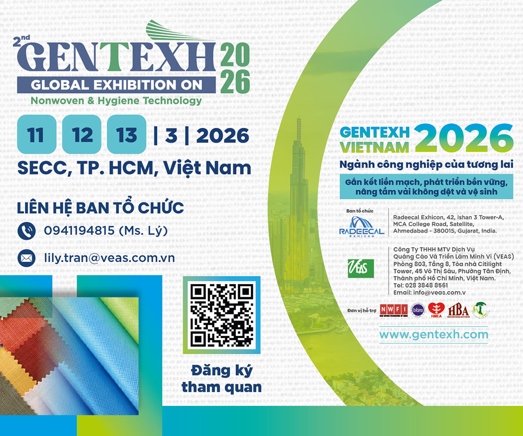 Gentexh Vietnam 2026 được kỳ vọng sẽ trở thành điểm hẹn quan trọng để các doanh nghiệp cập nhật xu hướng công nghệ mới, tìm kiếm đối tác chiến lược và mở rộng mạng lưới kinh doanh trong lĩnh vực vải không dệt và sản phẩm vệ sinh.